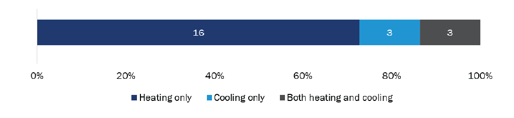 The survey findings reflect the experiences of customers with heat pump equipment installed between August 27, 2021, and July 6, 2022.[4] Ducted HVAC heat pump survey data includes responses from customers who installed either a split unitary or packaged unitary system. We define the three types of heat pump systems incentivized by TECH below.