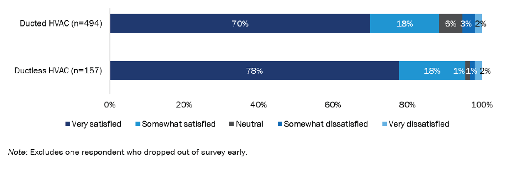 Overall, customers were satisfied with their HVAC heat pump, although those with a ductless system expressed slightly higher satisfaction than those with a ducted system (Figure 39).