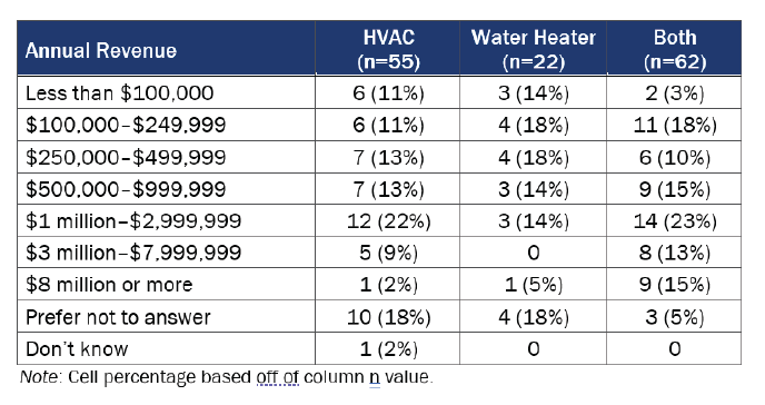 Opinion Dynamics surveyed market actors to gather information about contractor familiarity with heat pump technologies and the share of HVAC and water-heating jobs and sales that are heat pumps. This survey was designed to fulfill multiple objectives: