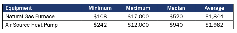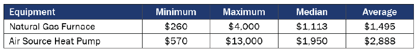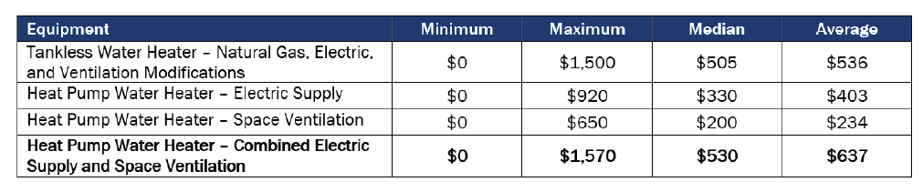 ASHPs are more expensive to install than gas-fired furnaces, while the total cost to install a HPWH was similar, though slightly higher, than a natural gas tankless water heater. The average cost to install an ASHP was estimated at roughly double the average cost of installing a natural gas furnace, though labor costs vary by region. The factors that influence HPWH installation costs included location (both of the unit within the house and of the home in California), contractor experience, and customer budgets. There may be some “risk pricing” in these estimates, whereby contractors inflate their prices to cover unforeseen risks. As the TECH Initiative is implemented and more contractors gain experience with heat pumps, these costs will likely decline.