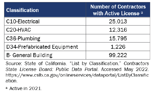 [20] California Contractors State License Board. Description of Classifications. 2021. https://www.cslb.ca.gov/Resources/GuidesAndPublications/DescriptionOfClassifications.pdf