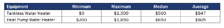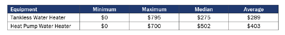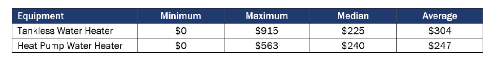 Table 27. Baseline HPWH Incentive Ranges by Fuel Type (n=18)