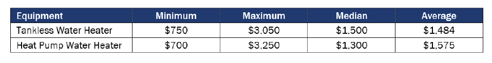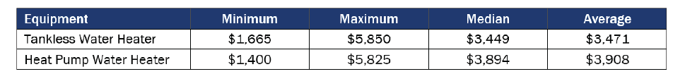 The total cost to install a HPWH was similar to, though slightly higher than, a tankless water heater. The factors that influence HPWH installation costs included location (both of the unit within the house and of the home in California), contractor experience, and customer budgets. The extent of needed electrical or plumbing upgrades also contribute to project cost variation.