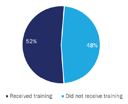 Just over half (44 of 84; 52%) of surveyed water heating contractors had received training on how to sell, size, service, or maintain HPWHs for residential properties (Figure 28).
