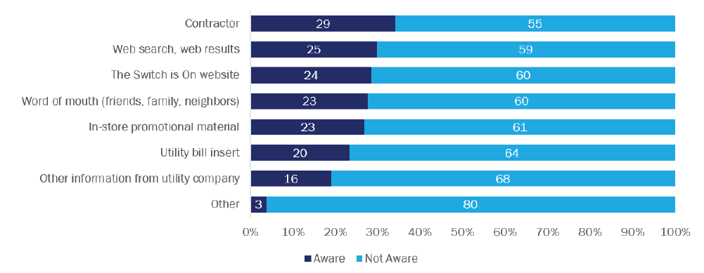 Twenty-seven percent of respondents who were aware of heat pumps first heard about them through word of mouth; other popular sources of information included social media (12%) and news articles (10%).