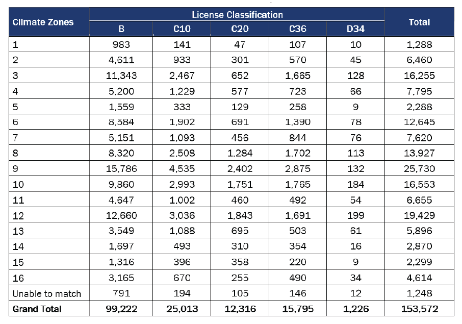 Table 31. Licensed Contractors by Climate Zone