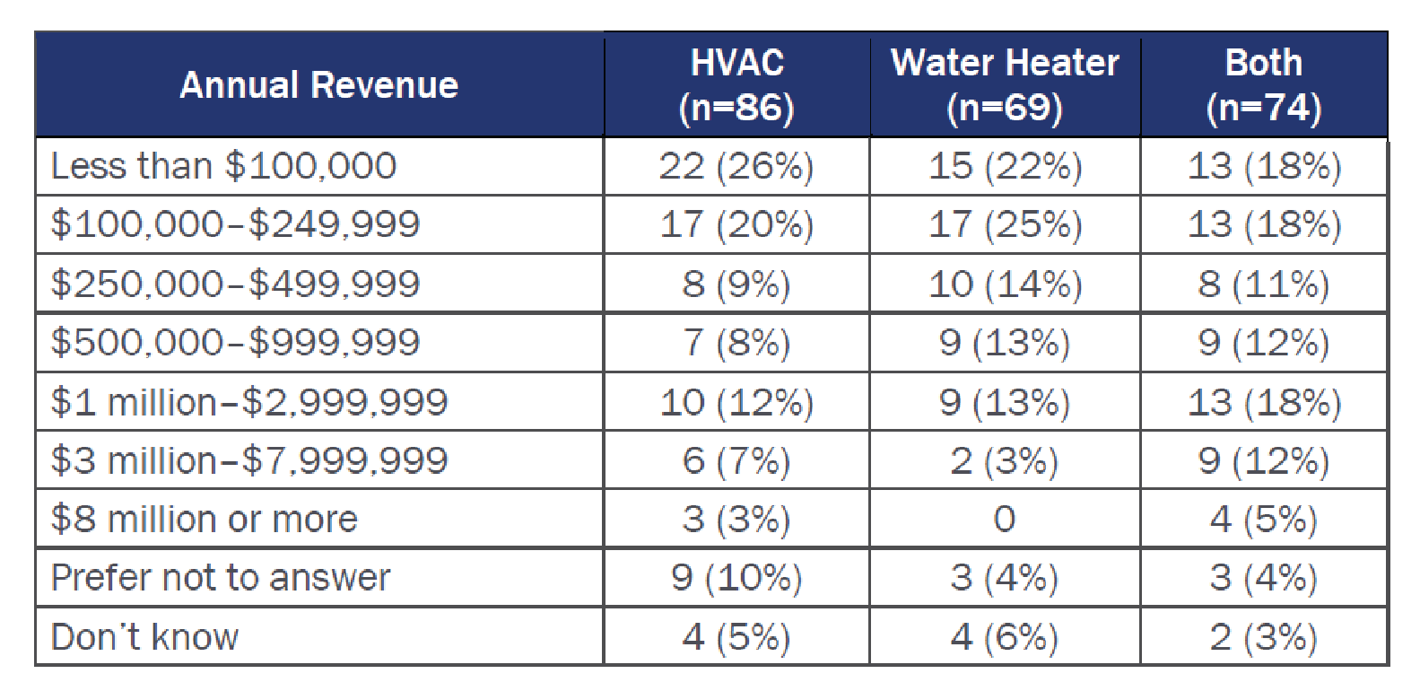 [3] We did not define “experience” in the survey. We can presume it means a combination of selling, sizing, installing, or servicing HVAC heat pumps.