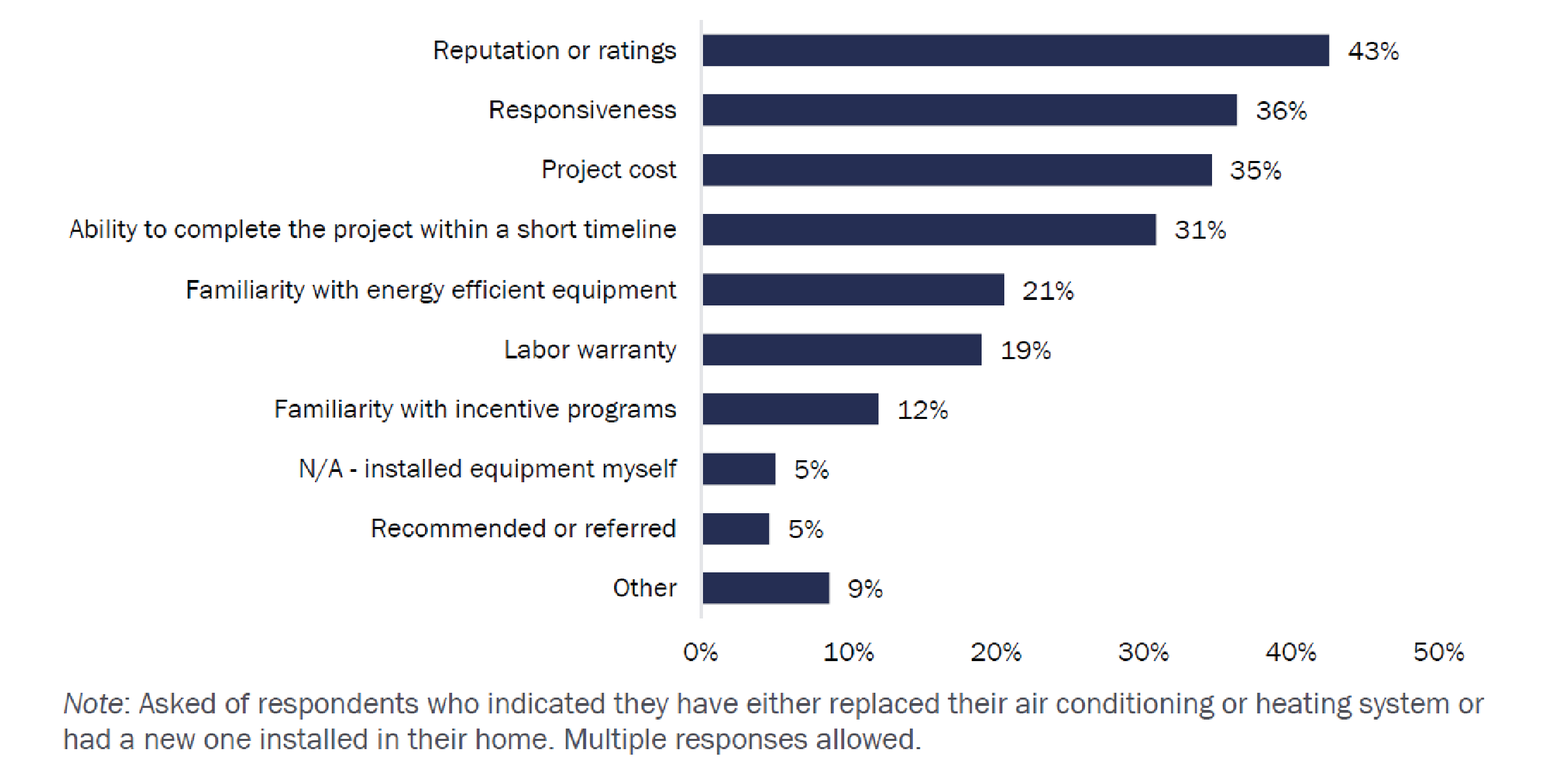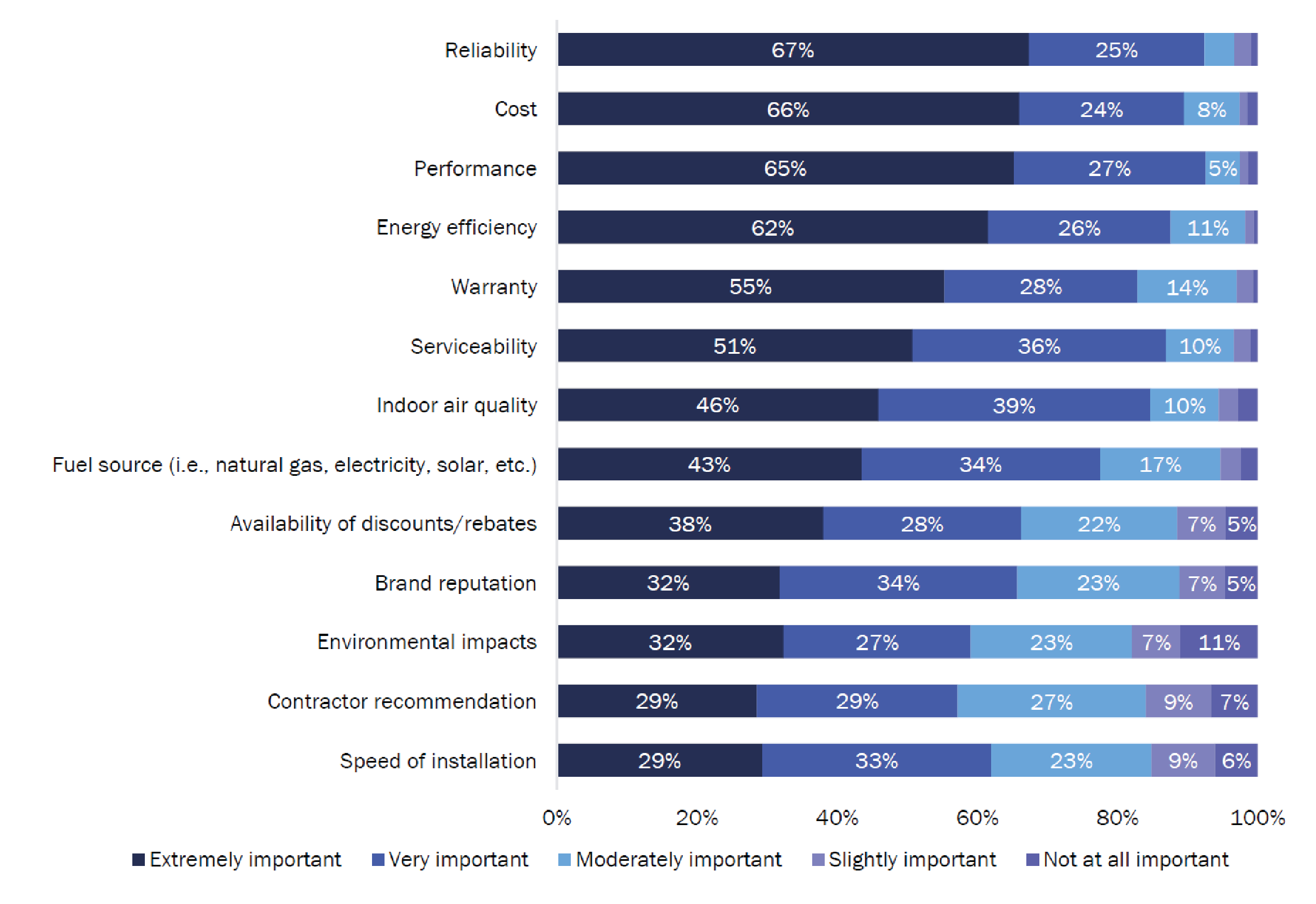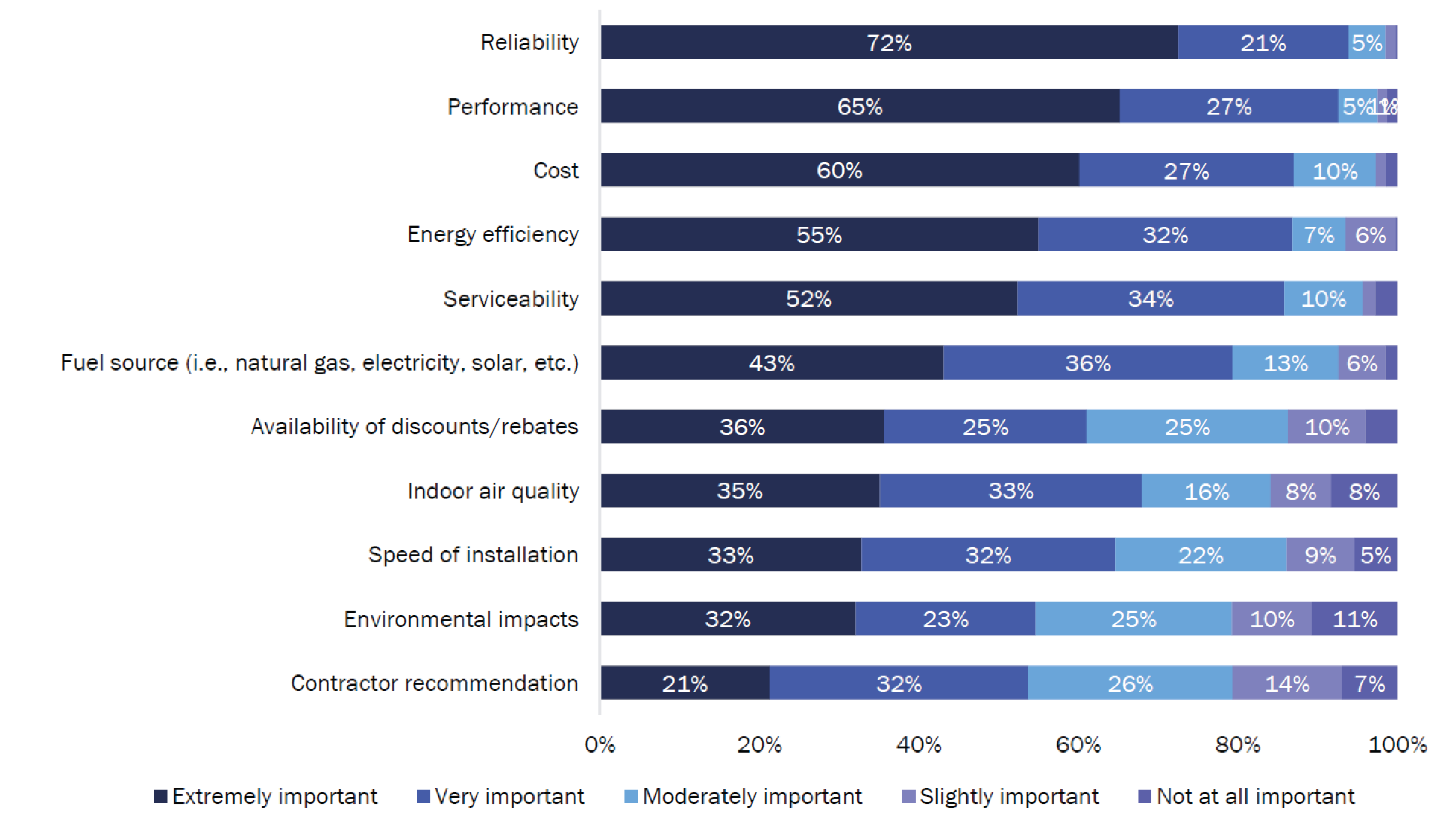 - As we observed at baseline, the most important factors to respondents when considering replacing their water heater were the reliability and performance of the system, along with the cost and energy efficiency level of the equipment.