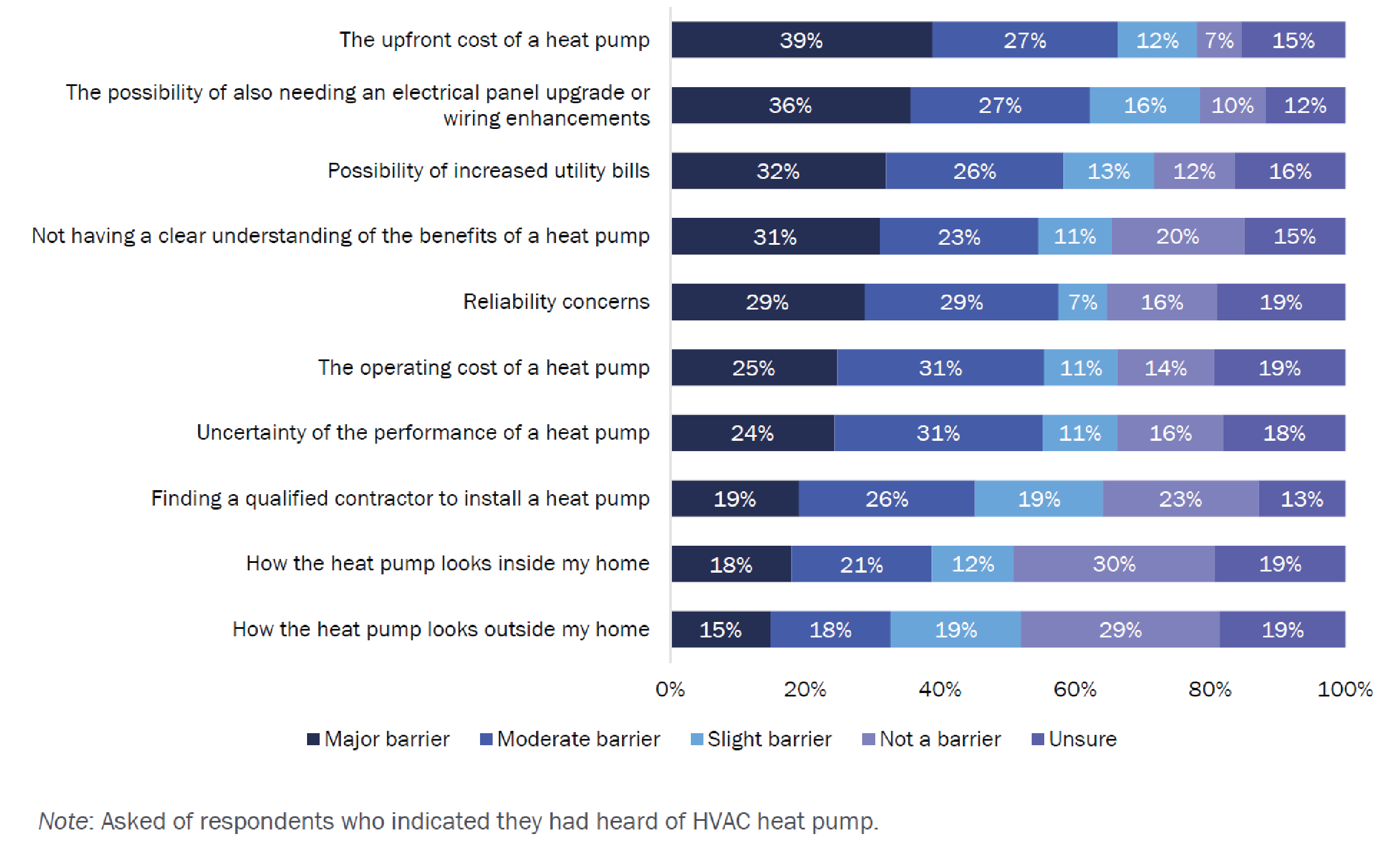 - Similar to baseline, respondents most commonly cited the upfront cost of equipment, the possibility of needing an electrical panel upgrade or wiring remediation, and the possibility of increased utility bills as the top barriers for them if they were to consider purchasing a heat pump.