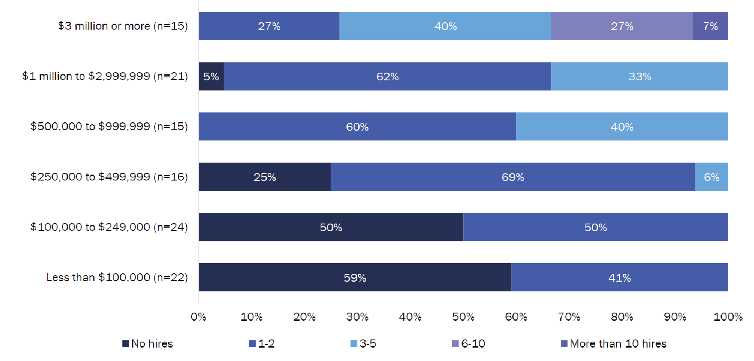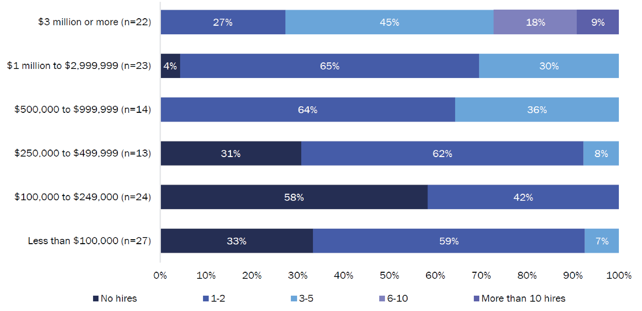 - All 46 firms with an annual revenue of less than $250,000 typically hire two or fewer installers per year, while all 15 of those with a revenue of $3 million or more hire at least six installers annually.