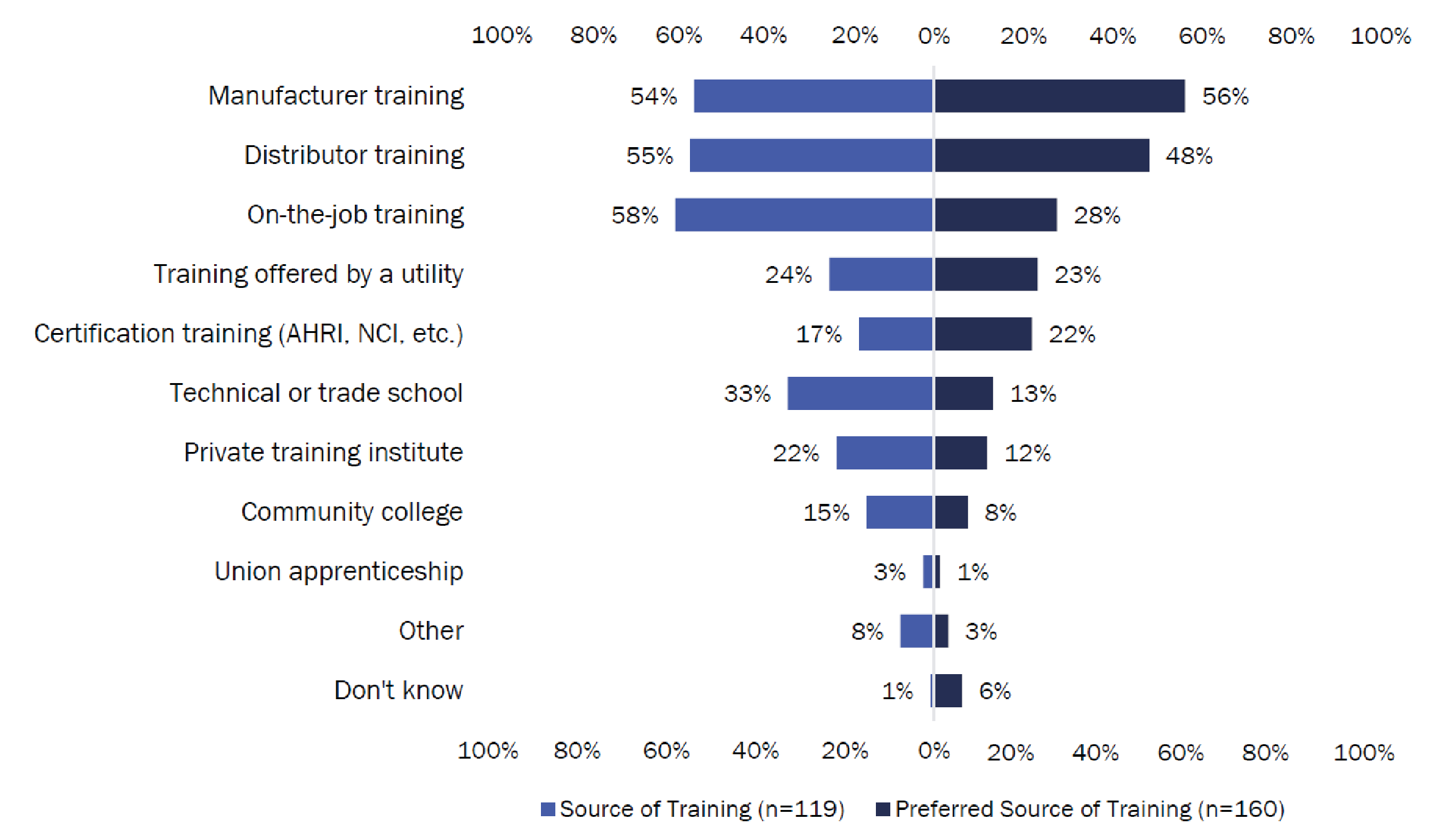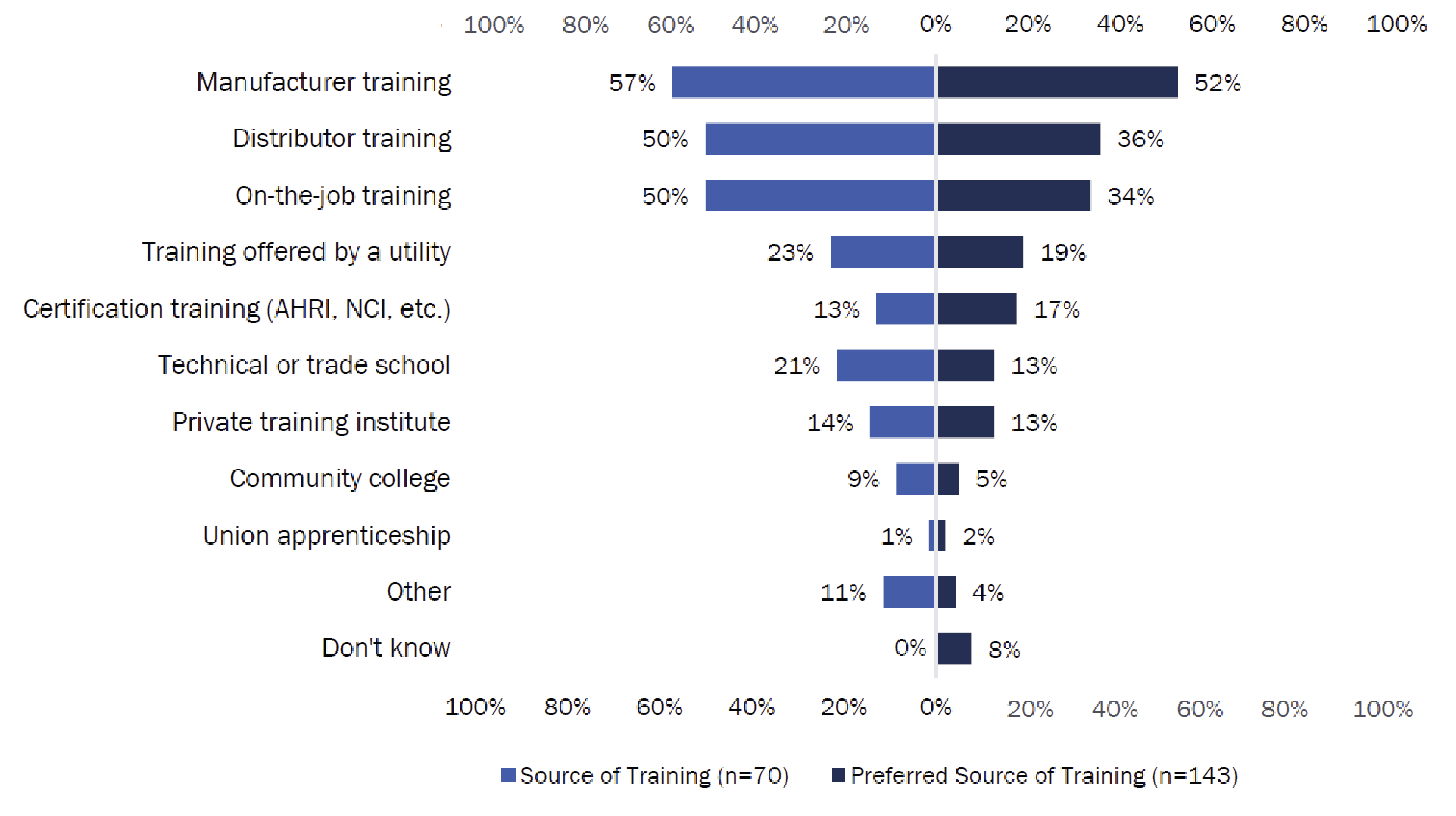 Figure 44. Sources of Heat Pump Training Versus Preferred Sources for Training (Multiple Responses Allowed)