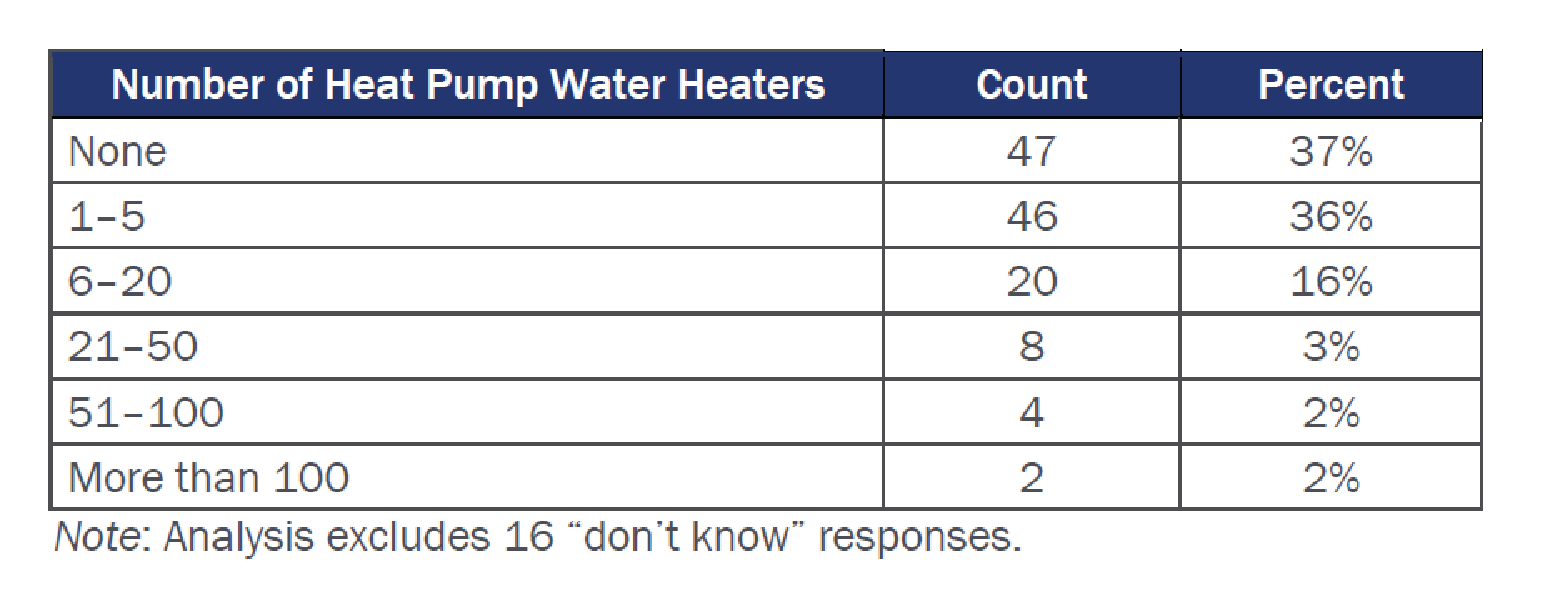 - Most surveyed contractor firms sold five or fewer HPWHs last year (93 of 127; 73%).